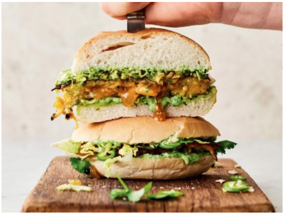 Drizzle 2 tablespoons of oil into a large non-stick frying pan over a medium low heat, then roughly divide the mixture into 4 portions and place in the pan, flattening them out into rough rounds, about the width of the buns (don’t worry about wispy edges, it’ll mean bonus crunch later!). Fry for 16 minutes, or until golden and cooked through, turning every few minutes. Meanwhile, pound most of the coriander leaves to a paste in a pestle and mortar, muddle in the yoghurt, then season to taste. Finely shred the lettuce, halve the burger buns (warm first, if you like), and puff up the dry poppadoms in the microwave for 30 seconds each.