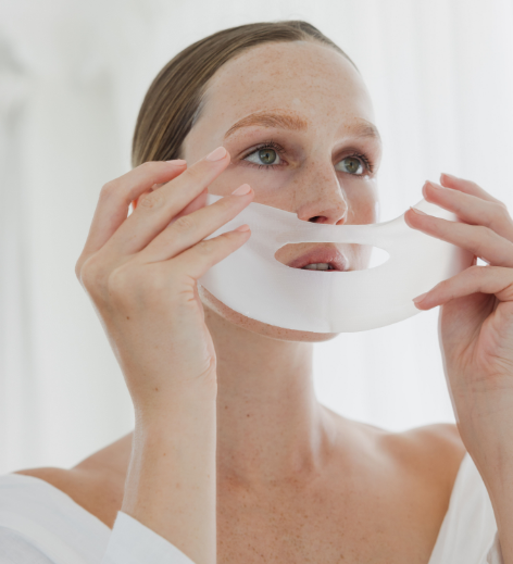 Apply the bottom half of the mask from the upper lip to the chin. Gently smooth the mask to the contours of face and leave on the skin for a minimum 10 to 15 minutes. Remove and massage excess serum over the skin.