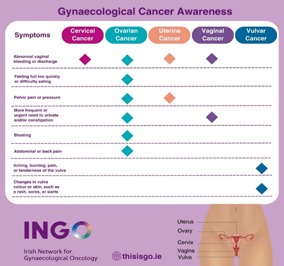 The Irish Network for Gynaecological Oncology (INGO) is a voluntary coordination body that consists of over 30 of Ireland’s foremost gynaecological cancer campaigners, researchers and patient advocates. They aim to educate people about the importance of sharing information in relation to prevention, symptoms, early diagnosis and treatment.