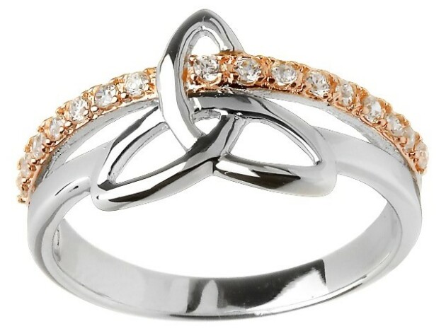 This ring is made from quality sterling silver and is produced right here in Ireland. With its rose gold plated band and cubic zirconia, it is attention-grabbing but still subtle so it can be worn on any number of occasions. This ring also features the Trinity Knot symbol which is made out of an unbroken knot and represents the eternal nature of love. Buy here.