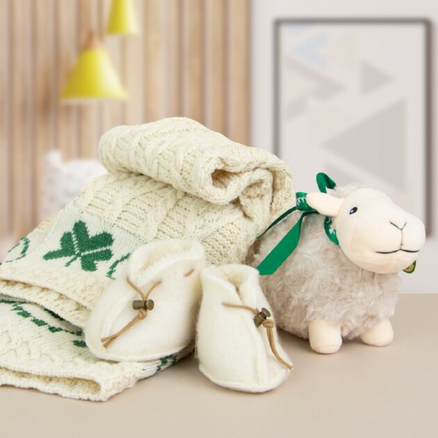 This baby knit hamper blanket and sheep set will make the perfect gift for any baby. This gorgeous bundle pack includes: Large Cream Soft Toy Sheep with Bow, Baby Blanket and Baby Wool Booties. Buy here.