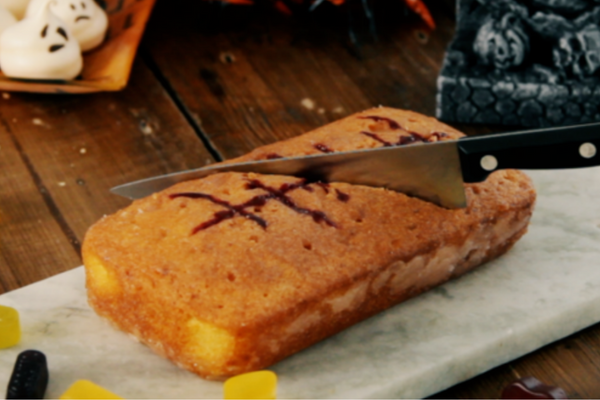 Light and flavourful orange drizzle cake with just a hint of Halloween.