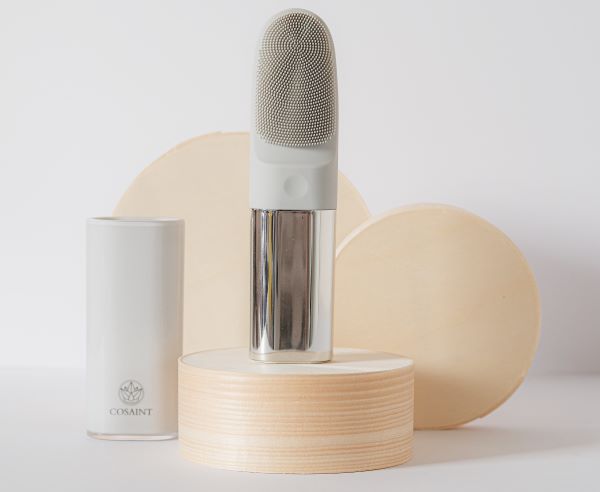 Cosaint’s Award-Winning Skin Cleansing Brush with Eye Massage deep cleanses on the level only an in-salon facial can achieve; buffing away full coverage foundation, eye-makeup and grime to reveal a fresh glowing complexion.