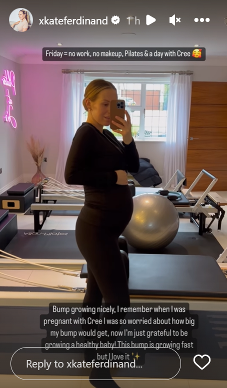 Now, Kate has shared a new glimpse of her growing baby bump and has said how grateful she is to be growing a healthy baby after previously worrying about the size of her bump when she was pregnant with her son Cree.