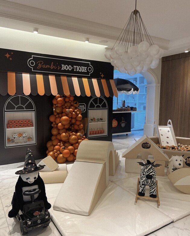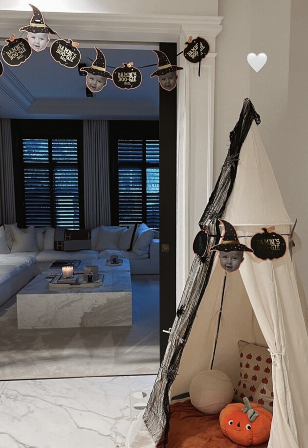 The bash was hosted at the family-of-three’s lavish Manchester home. Alongside the traditional decorations of pumpkins, spider webs and skeletons, Molly-Mae also organised ‘Bambi’s BOO-tique’ – a playful shop window where guests could treat themselves to sweet delights.