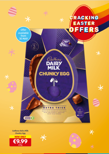 - Cadbury Daily Milk Chunky Egg 400g €9.99 In store only,