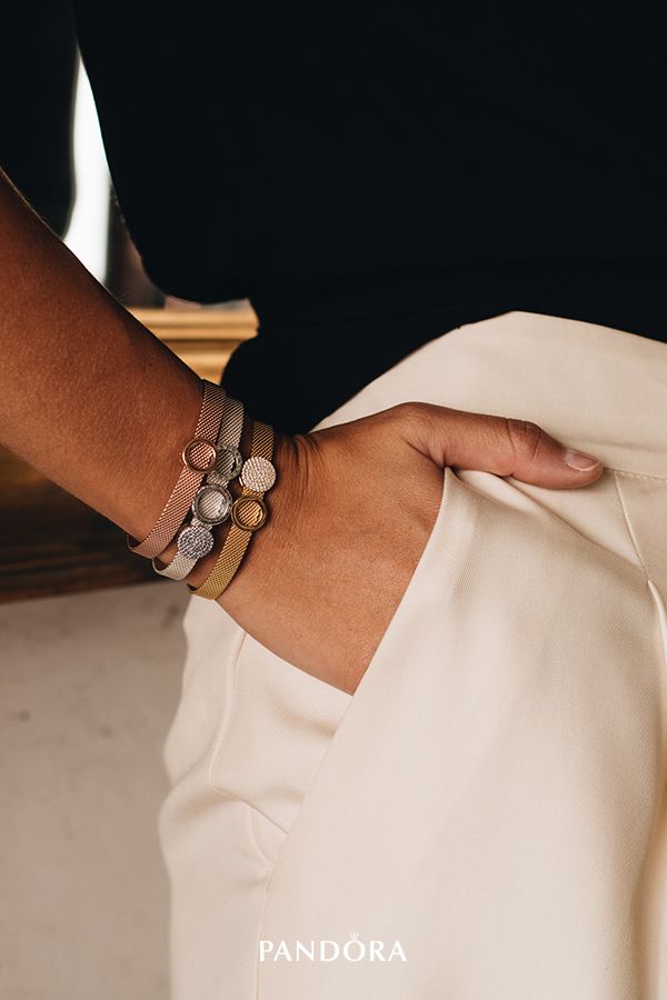 The beautiful new Pandora Reflexions bracelet is crafted in rose, silver or gold. The blush-hued flat weave design sits flush with your wrist. Just add your edit of clip charms to this new classic.