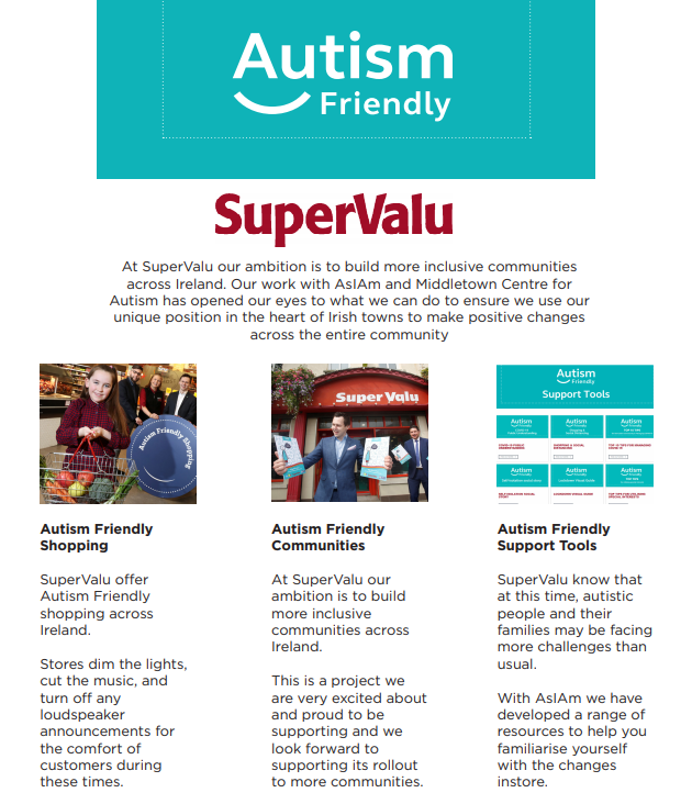 SuperValu is dedicated to making communities around Ireland more inclusive and is leading the way in autism friendly shopping by continuously raising understanding and awareness of autism among its customers and staff.