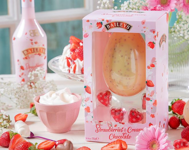 The Baileys Strawberries & Cream Chocolate Egg (RRP €12) combines a melt-in-the-mouth, creamy white chocolate shell complete with a fruity explosion of dried strawberry pieces and is presented with four luscious milk chocolate hearts, each filled with a dreamy truffle filling that perfectly blends the fresh, sumptuous taste of strawberries and creamy vanilla, together with the luxurious taste of Baileys Original Irish Cream. It’s a match made in heaven!