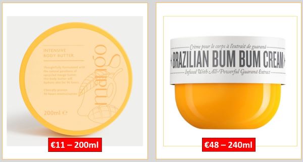 Now, eagle-eyed shoppers have found a high-street supermarket own-brand version that costs less than a quarter of the price of the 240ml cream, for 200ml of product. Those browsing the beauty section of M&S may have stumbled across their new body care products, which are similar to those of the Brazillian cult beauty brand. The Mango Body Butter from the new Burst Bodycare range claims to leave your skin hydrated for 96 hours. In orange packaging, the 'intensive body butter' makes a good, cheaper alternative to the more expensive €48 Bum Bum cream.