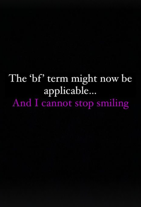 Last night, the 26-year-old took to his Instagram stories and simply wrote: “The ‘bf’ term might now be applicable… And I cannot stop smiling.”