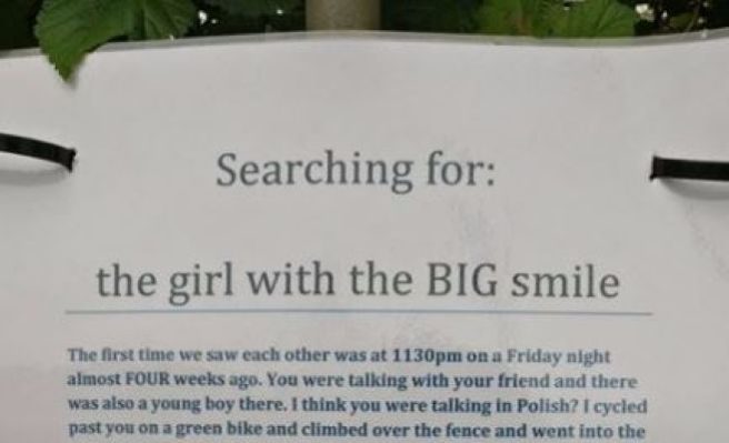 Reaching out to a young woman who caught their eye, one lovelorn person explained the circumstances that led to their posting of a very detailed and lengthy notice in public.