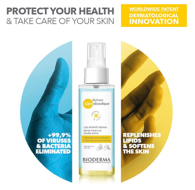 That’s why NAOS, the French skincare brand and parent company of Bioderma, is proud to launch Bioderma ’s Biphase Lipo Alcoolique, a dermatological innovation that works to eliminate 99.9% of viruses, such as Coronavirus, and replenishes the skin’s lipids. Research in France found that 84% of people reported dryness with problems of itching (30%), cracking (26%) and irritation (24%) on the hands.
