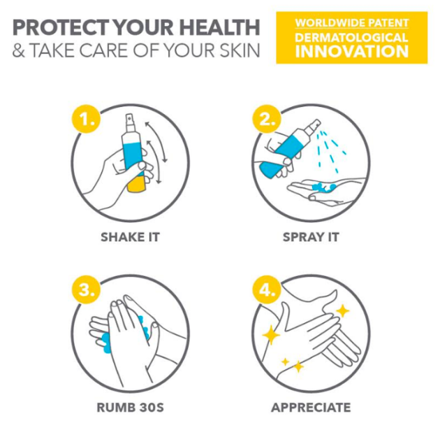 This innovative new product serving public health represents a new frontier in hand care at a global level and a patent has been registered for worldwide use. Independent studies have confirmed its safety and efficacy. 100% of people who tested the product declared that the product properly disinfects skin and protects it from dryness.