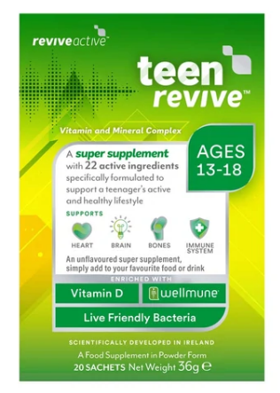 Junior Revive, €18.95 and Teen Revive, €19.95 contain 22 active ingredients and are formulated to support the heart, brain, bones, and immune system. Revive is suitable for children aged from 4 to 12 years old and Teen Revive is suitable for teenagers aged 13 to 18. Teen are unflavoured and therefore it is convenient for you to include in their morning routine by simply adding it into smoothies, yoghurts, fruit juices or even water.
