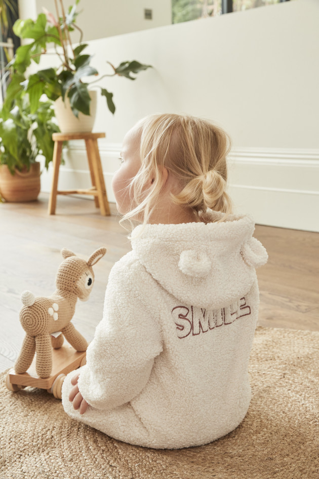 This new range sees the introduction of a more muted colour palette with the use of cosier fabrics such as borg and chunky knits. Attention to the smaller details has been key, with the inclusion of ‘Love Me & Hand Me Down’ back neck labels to encourage multiple wears and longer life.