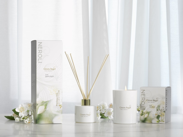 A diffuser or scented candle can instantly create that luxurious spa experience at home. Floral based, the new Green Angel fragrances include precious Neroli Fragrance, a sensual scent made from the distilled petals of the orange blossom tree.