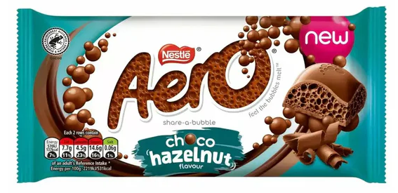 This addition to the Aero lineup reflects Nestlé's ongoing commitment to innovation and meeting the evolving tastes of its consumers. The Choco-Hazelnut bar blends the beloved light, bubbly texture of Aero with the indulgent richness of hazelnut, creating a unique and satisfying chocolate experience.