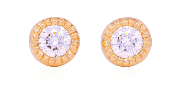 The Earrings: A pair of bezel set diamond solitaire stud earrings.