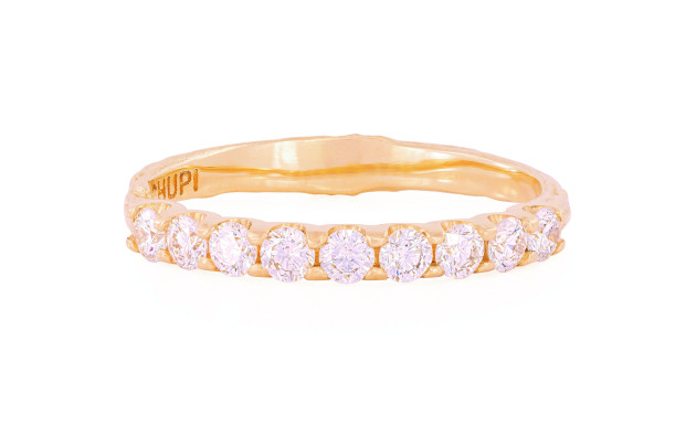 Inspired by the dramatic jewellery of the Georgian era, make a statement with a diamond eternity ring. Set with nine diamonds and paired with Chupi’s signature hawthorn twig band, this is the perfect balance of beauty and strength.