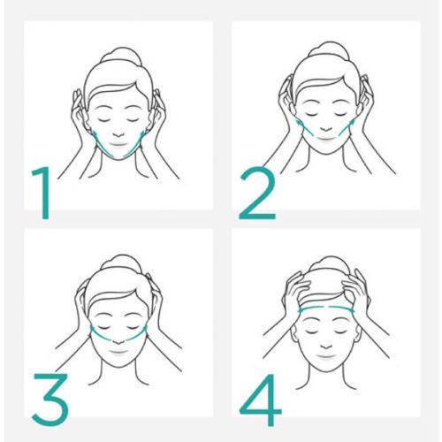 - You can make smoothing motions using the base of your palms, taking care not to stretch the skin under the chin, following the facial oval up to the earlobes.