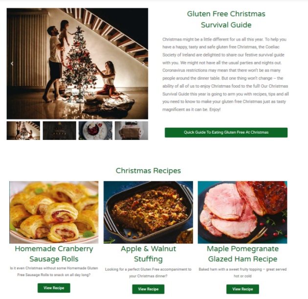 That’s why the Coeliac Society of Ireland has created a dedicated the Gluten Free Christmas Survival Hub – to provide support for the estimated 50,000 coeliac sufferers and 400,000 people who are gluten intolerant in Ireland and ensure that they, and their friends and families – can organise a tasty, healthy, and safe gluten-free Christmas in 2020.