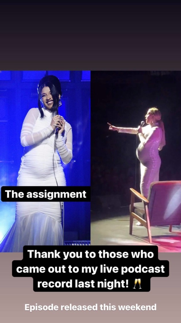 Katherine kept her pregnancy a secret for quite some time now, deciding to share her big news by unveiling her blossoming baby bump while hosting a live show of her podcast last night at Kentish Town forum in London.