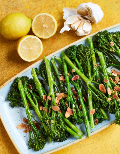 Tenderstem® broccoli with flaked almonds, parsley and lemon butter sauce