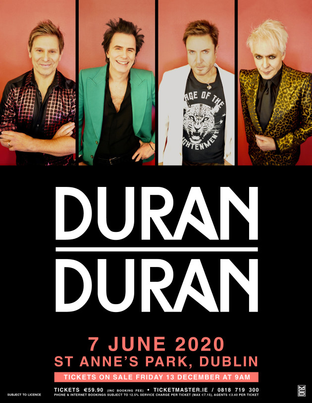 Well, it’s official, Duran Duran have announced their highly anticipated return to Ireland with an outdoor performance at St Anne’s Park, Dublin on Sunday 7th June 2020, in support of the release of their next studio album. Tickets go on sale am this Friday, 13th December at 9am on www.ticketmaster.ie