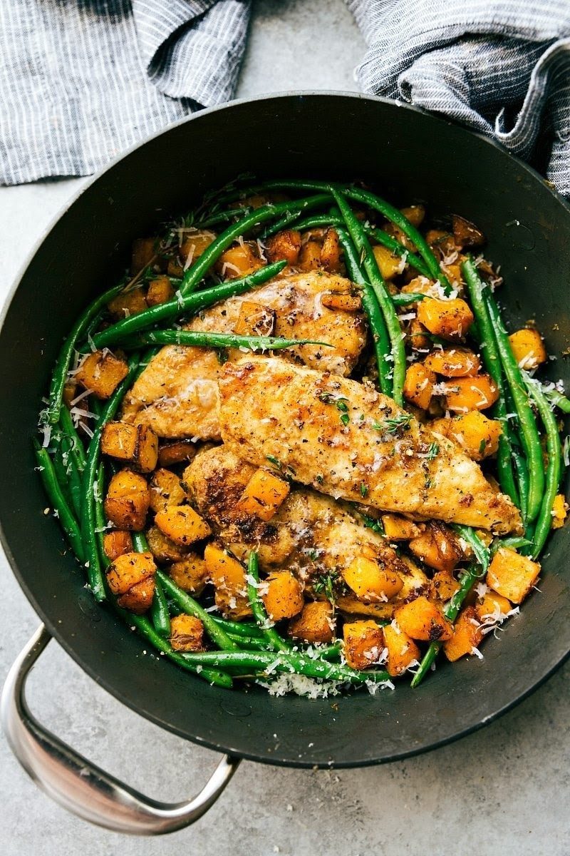 Perfect for lunch or dinner, butternut squash chicken skillet is sure to please your taste buds with a rich flavor and aroma for fall. Consisting of cubed boneless chicken, cubed butternut squash, nutmeg, cinnamon, maple syrup, chicken broth, vegetable oil, and a few spices, this paleo diet meal is so delicious that you wouldn’t get enough of it. What’s more, the dish is so easy to make that it will only take around 20 minutes to cook a butternut squash chicken skillet recipe that yields four servings. As far as the health benefits of this mouth-watering white-meat-vegetable-spice combo go, the delicacy is low in calories with 317 calories per serving, making for a perfect weight loss meal. Apart from containing fewer calories, butternut squash chicken skillet is high in Vitamin A (288.9%), Vitamin C (71%), manganese (61.0%), and niacin(57.8%) among other nutrients that play a key role in sustaining good health. Furthermore, the meal packs 95% of all the nutrients that are essential for pregnant and breastfeeding moms; including calcium, carbs, fibre, and protein. That’s not to mention vitamins A, B6, B12, C, and D, alongside iron.