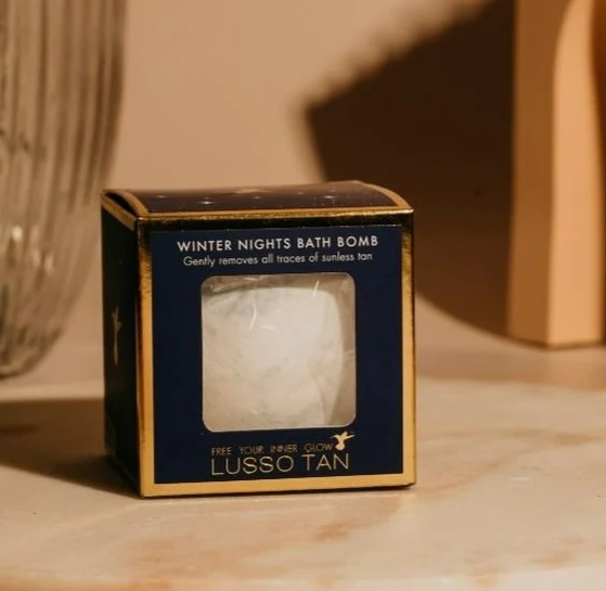 Tan removal causing heartbreak and heartache? Not anymore!  Lusso Tan’s world-famous tan removing bath bomb now in a coveted Winter Nights scent. Not only will it do the hard work for you, but it is packed full of ingredients that restore, renew, and rejuvenate the skin. Giving the gift of tan removal and a relaxing bath moment, who wouldn’t want to wake up to this in their stocking?