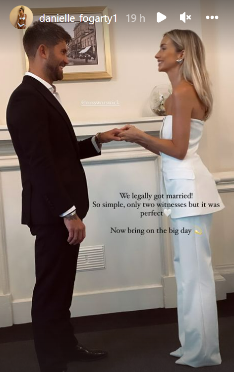 Danielle posted a series of snaps to her Instagram stories with details from the special day. She wrote, “We legally got married! So simple, only two witnesses but it was perfect. Now bring on the big day”.