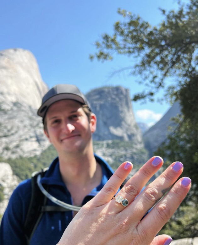 The 31-year-old posted two adorable pictures to Instagram. The first snap showcases the couple taking a romantic hike at Yosemite National Park in California, with Emily showing off her stunning engagement ring in front of her fiancé.