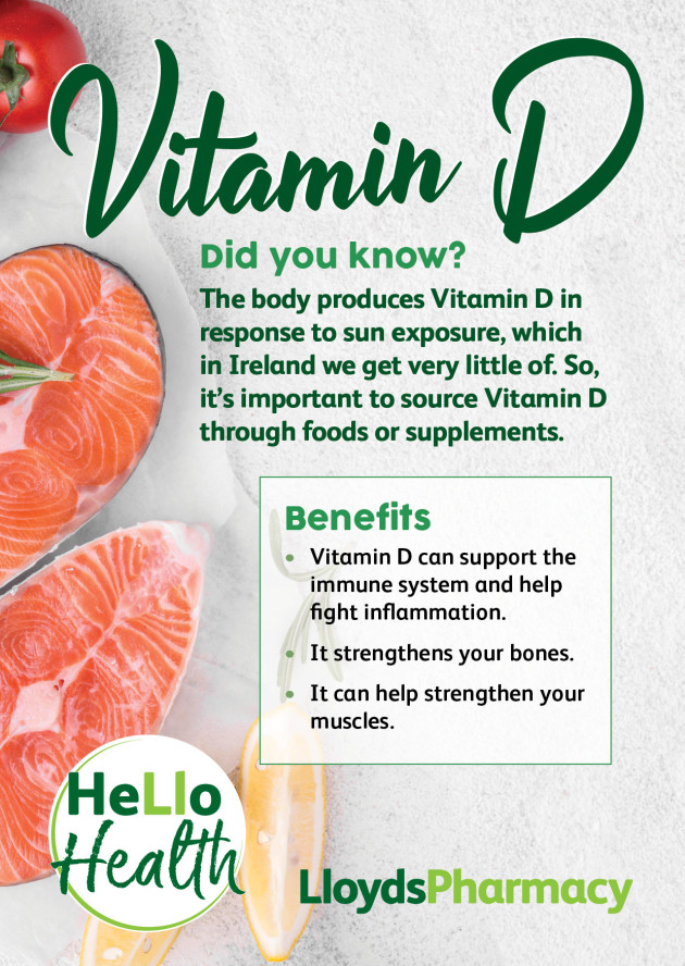 Did you know? The body produces Vitamin D in response to sun exposure, which in Ireland we get very little of. So, it’s important to source Vitamin D through foods or supplements.
