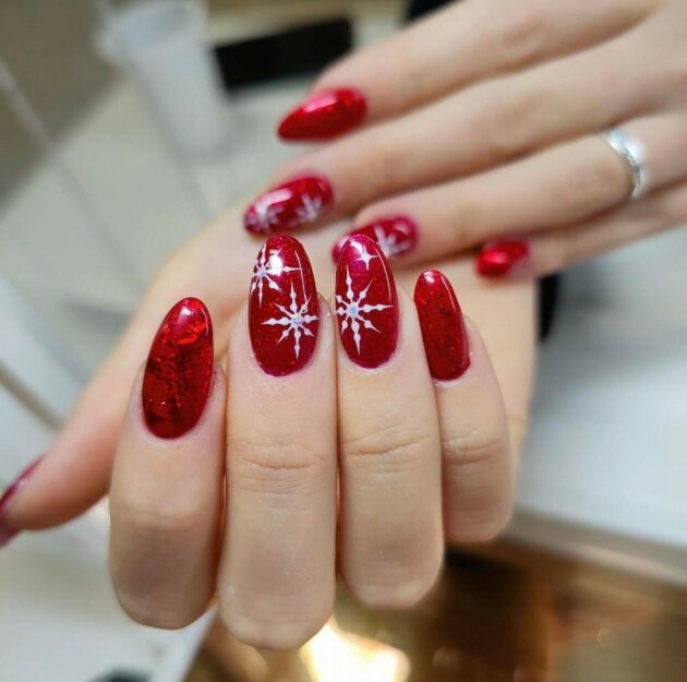 This fabulous nail design just screams festive vibes. Ideal for those of you who like to keep things simple but still want to mark the season with a touch of glitter.