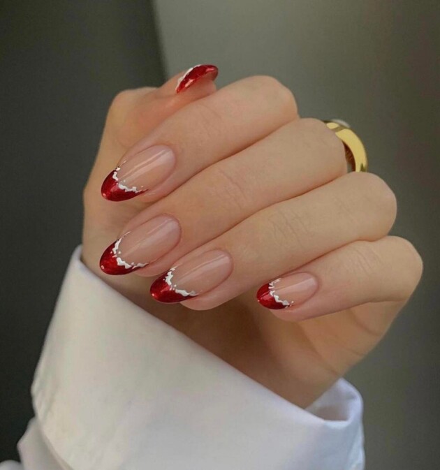 A festive twist on the classic French tip design, these nails are super fun without being too garish.