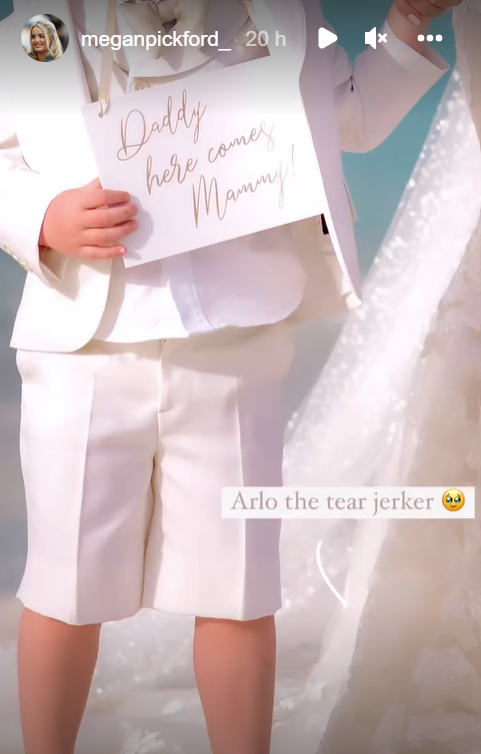 The couple’s three-year-old son Arlo stole the show as he held a sign that read ‘Daddy here comes Mammy!”. The 26-year-old described her son as being a “tearjerker”.