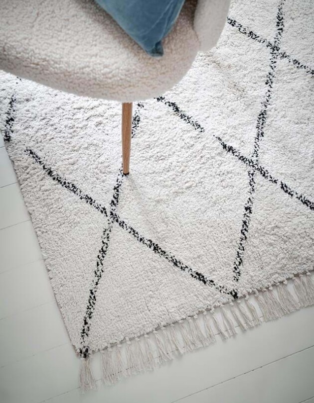 Anna and Clara, founders of Sostrene Grene, have decorated their hallway with warm colours and natural materials, like this beautiful soft rug to create a sense of calmness and warmth that is wonderfully welcoming to your guests. A few small homey touches like this one can make a small cold space come alive and really connect it with the rest of the house. Some soft textures and fabrics add a softness to the room that make you look forward to heading to relaxing in it each day! You’ll feel well set up and settled into the space with little touches like these.