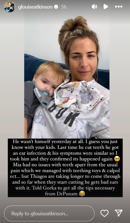Atkinson also added text to the screen, which reads, “He wasn't himself yesterday at all. I guess you just know with your kids. Last time he cut teeth he got an ear infection & his symptoms were similar so I took him and they confirmed its happened again”.
