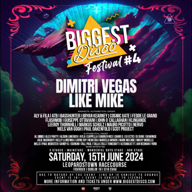 Tickets are available now at BiggestDisco.ie with pricing starting at €76.32 – over 18’s only.