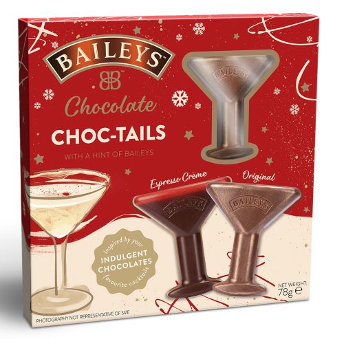Introducing the most scrumptious star of the season, the brand-new Baileys Choc-Tails. This gifting pack includes four delicious cocktail shaped chocolates that are sure to make your festivities sparkle. Each Choc-Tail is infused with one of two festive flavourings, the creamy Baileys original flavour or the rich Espresso Crème flavour. Perfect for a sweet after-dinner delight or to make a coffee or cocktail extra indulgent – a must have for any festive celebration.