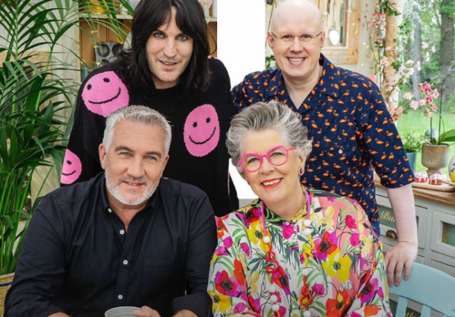 The social media team posted a selfie taken by judge Paul Hollywood, alongside his fellow judge Prue Leith and the show’s presenters, Matt Lucas and Noel Fielding.