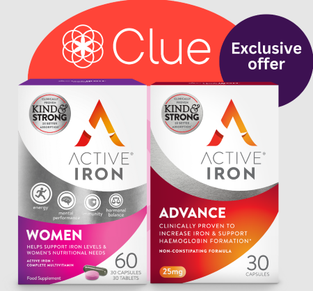 In order for women to better track their menstrual health, Active Iron has partnered with Clue, offering free access to the leading menstrual and reproductive health app. The globally recognised app monitors menstrual symptoms and offers personalised health insights.