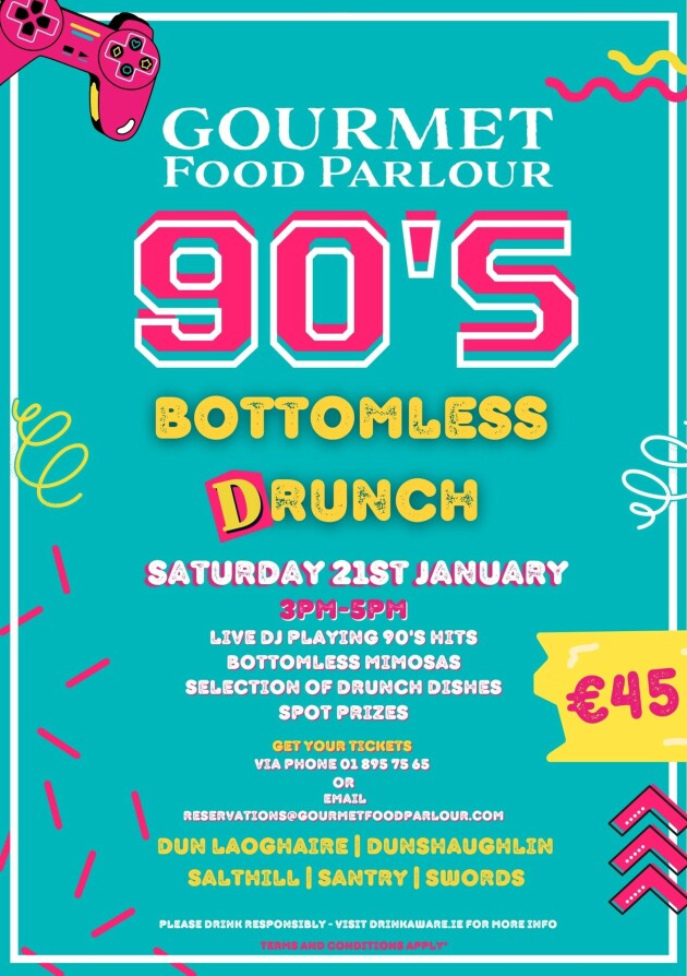 If the sound of ‘drunch’ tickles your fancy, then it couldn’t be easier to book a place for you and your guests. As tickets are extremely limited, customers are being advised to book early in advance to avoid any disappointment. With tickets at €45 per person, Gourmet Food Parlour’s Bottomless Drunch is the perfect excuse for you and your besties to have some fun.