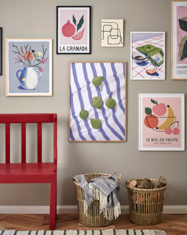 Personal gallery wall with posters from søstrene grene – bring the colours of the season and artistic motifs into the home with a personal gallery wall. For the first time, the sisters now present a selection of 12 posters, only available in Søstrene Grene. All posters are printed on FSC®-certified paper, while the wooden frames from Søstrene Grene – as shown here – are made of FSC®-certified wood.