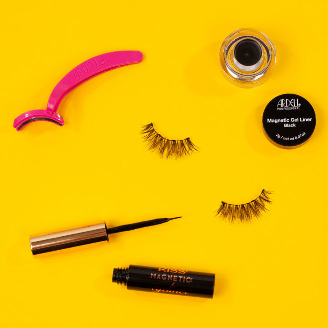 - Magnetic Lashes with Liner: Generally these incorporate a black eyeliner and a single magnetic lash for each eye. The liner is applied and the false lash itself adheres (magically!) to the magnetic liner once dried
