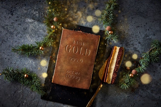 Luxury Millionaire’s Gold Bar Cheesecake (652g) €7.50 – Baked caramel cheesecake on a biscuit crumb base, topped with a smoked salted caramel sauce and dark chocolate plaque with gold sparkle.