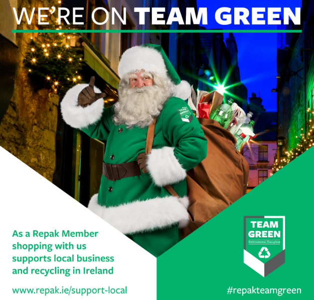 This Christmas, we are calling on the public to show leadership and responsibility for protecting the environment, by recycling more and correctly at home. Joining our initiative, Repak’s Team Green is a positive first step in that regard. Since we first launched Team Green, Ireland’s packaging recycling tonnes have increased by 9.1% and almost 20,000 individuals have committed to protecting the planet, showing the difference we can make by working together. I would encourage those who have not yet joined to do so to learn about best practice recycling behaviours’.
