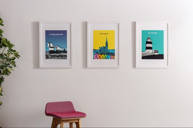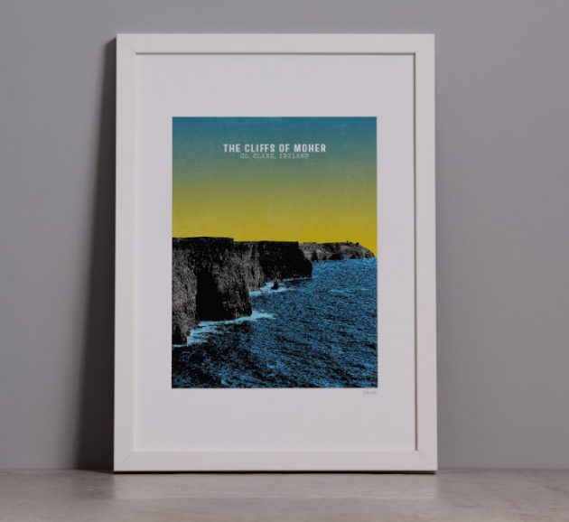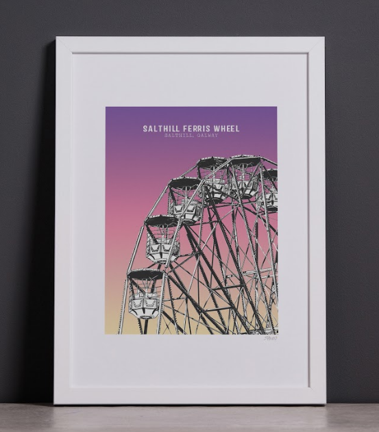 Popular Dublin prints of the Poolbeg Chimneys, The Ha’penny Bridge or the Guinness Brewery or venture further afield with beloved prints of Cobh Cathedral, Salthill Ferris Wheel or the Cliff of Moher.