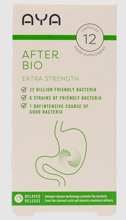 AYA After Bio (RRP €9.99) After Bio contains 10 billion friendly bacteria per capsule with six strains of bacteria for a broad spectrum of probiotic activity.